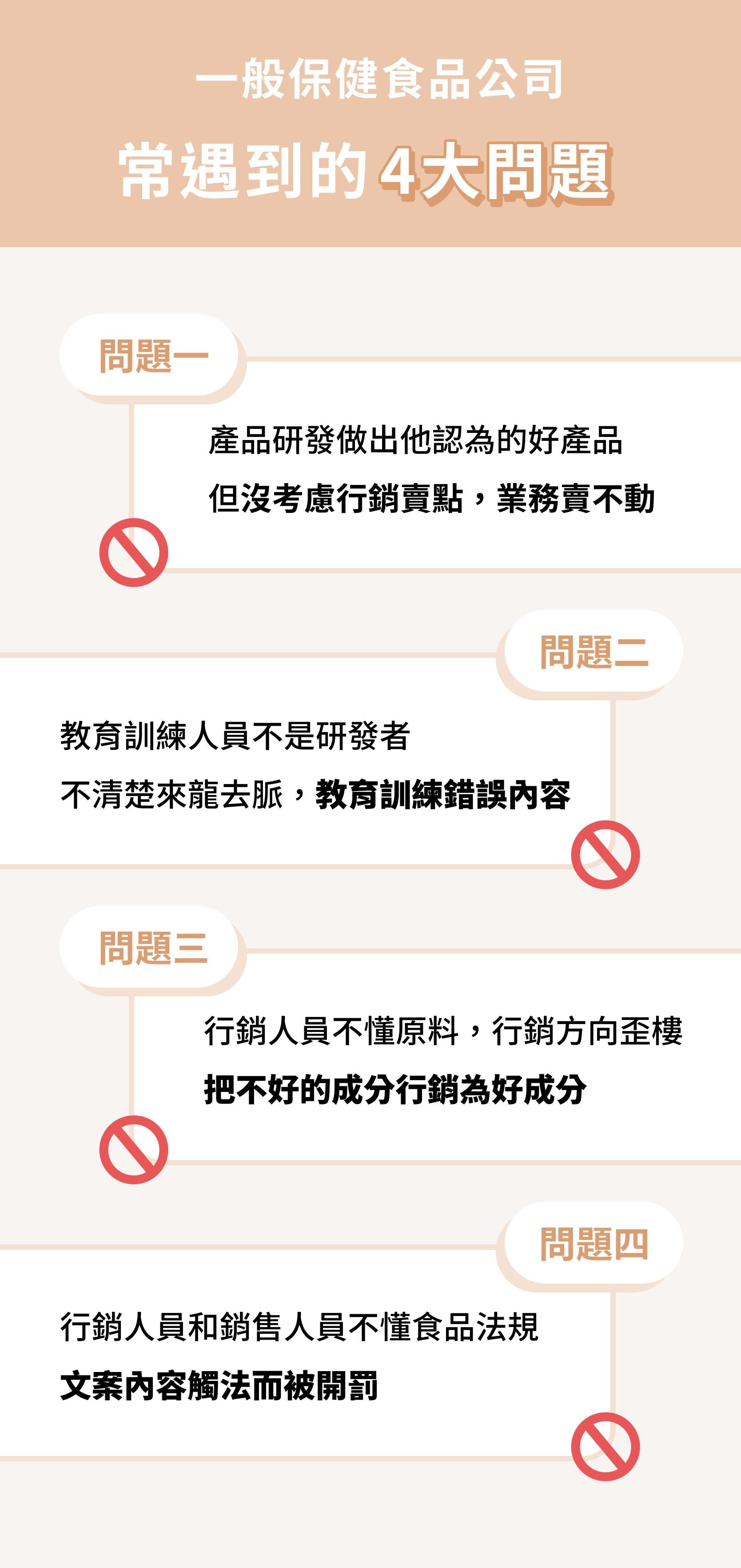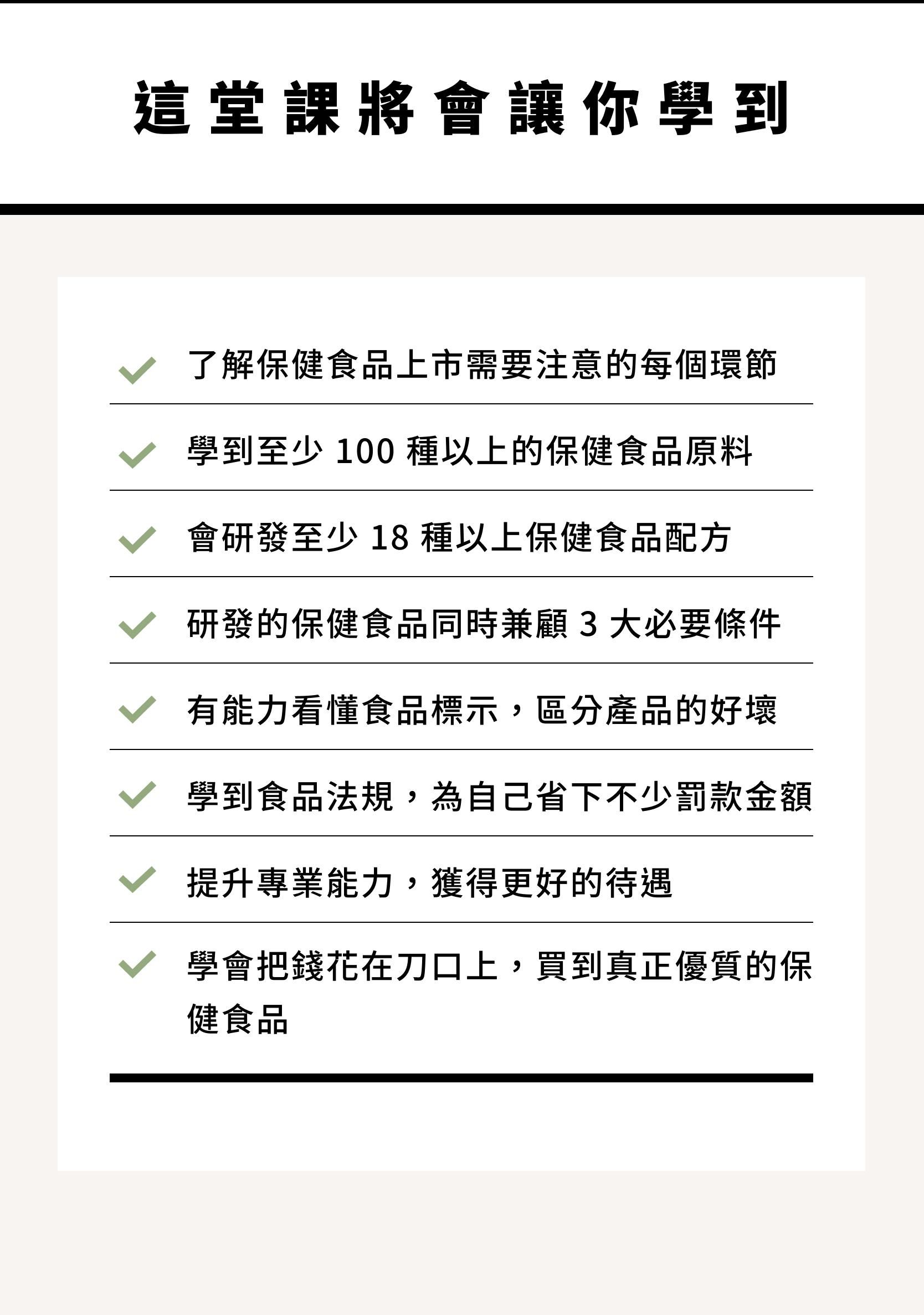 從2014開培訓課程至今,我的初衷一直都沒有改變:我希望能教育賣保健食品的人用正確的方式來賣產品,並且協助業者製造出優質的產品,藉以提升整體產業的專業程度;也希望能教育消費者選擇好的產品,不僅能讓身體健康,也才能讓劣質產品從市場上被淘汰。